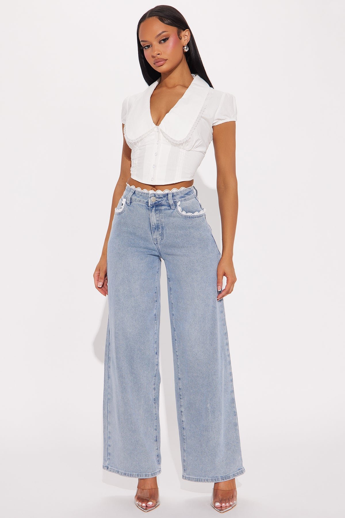 Sé el primero en valorar “Cutesy Bow Lace Trim Straight Leg Jeans LightWash”